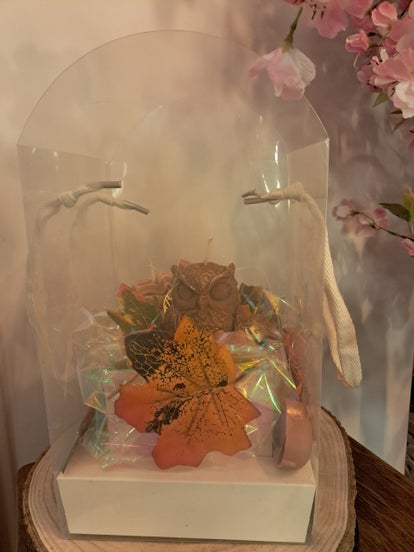 Composée de 2 bougies ( Un hibou 90 grammes et une bougie livres 70 grammes)