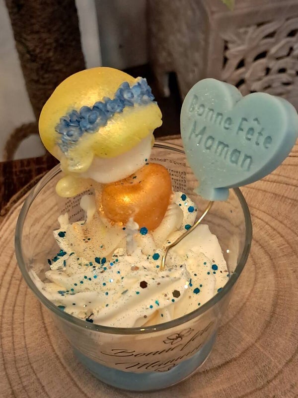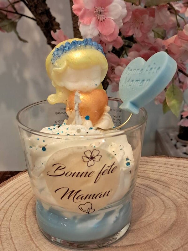 Bougie " Bonne fête maman" senteur Chérubin ( inspiré d'un parfum un ange passe...)