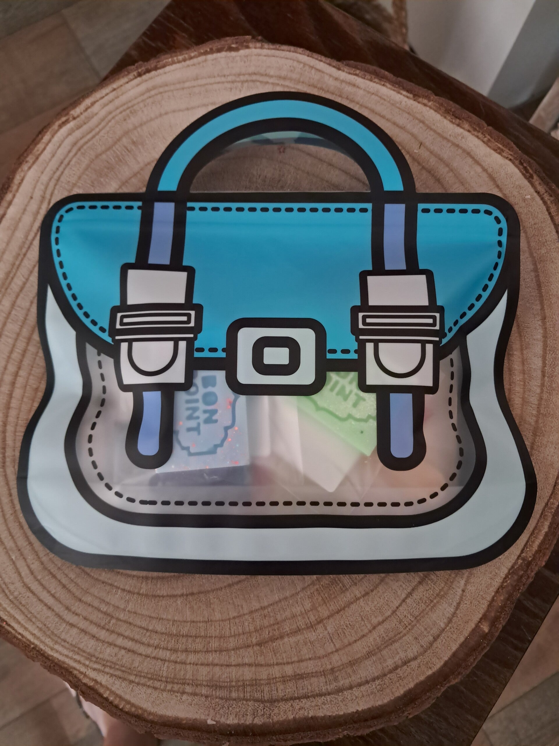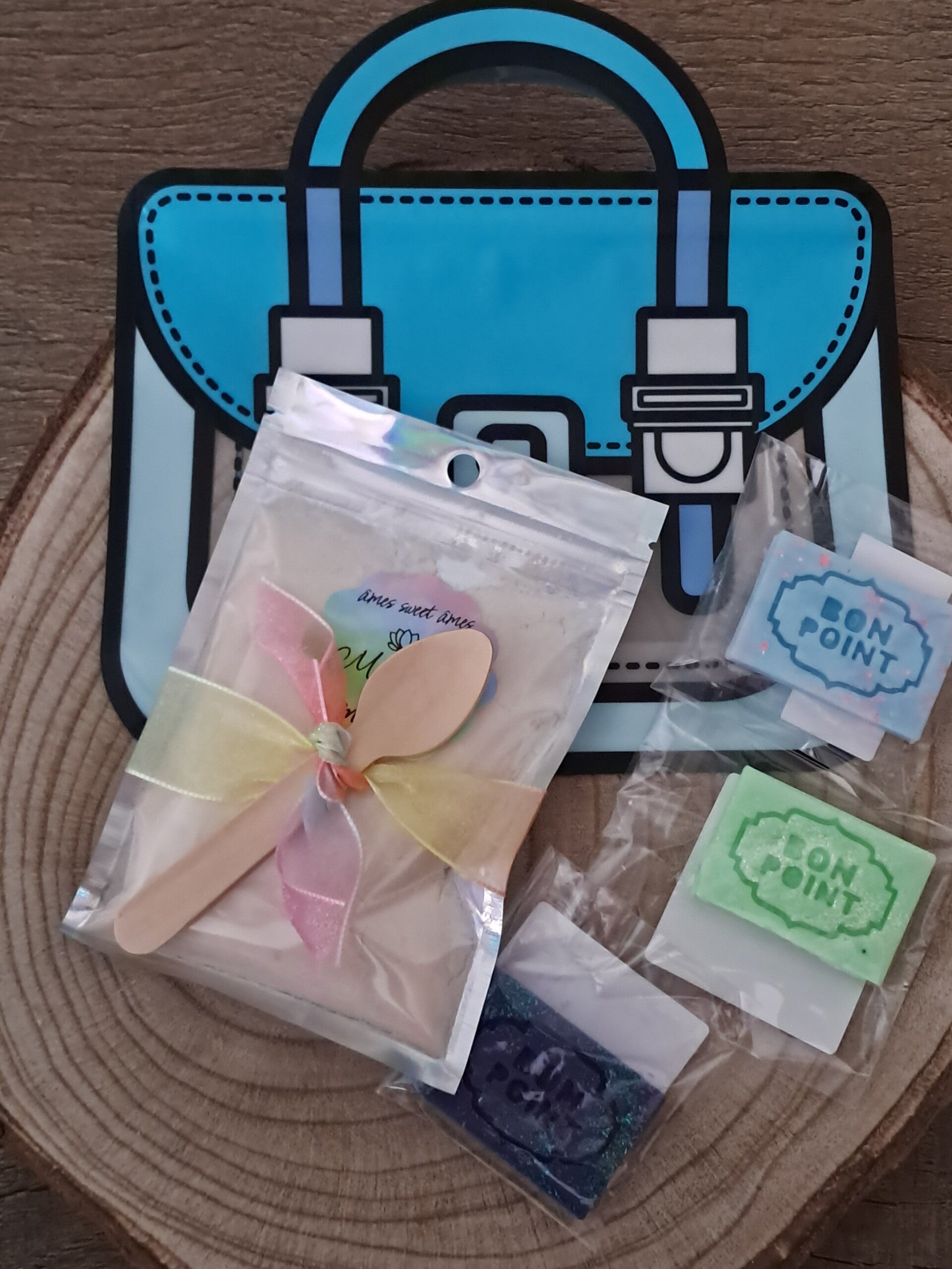 Colori et senteur aléatoire ( ou petit message à la commande si vous aimeriez par exemple plutôt cartable bleu avec poudre aspi agrumes et fondants..., j essaierai dans la limite des stocks disponibles de satisfaire vos demandes 😁)