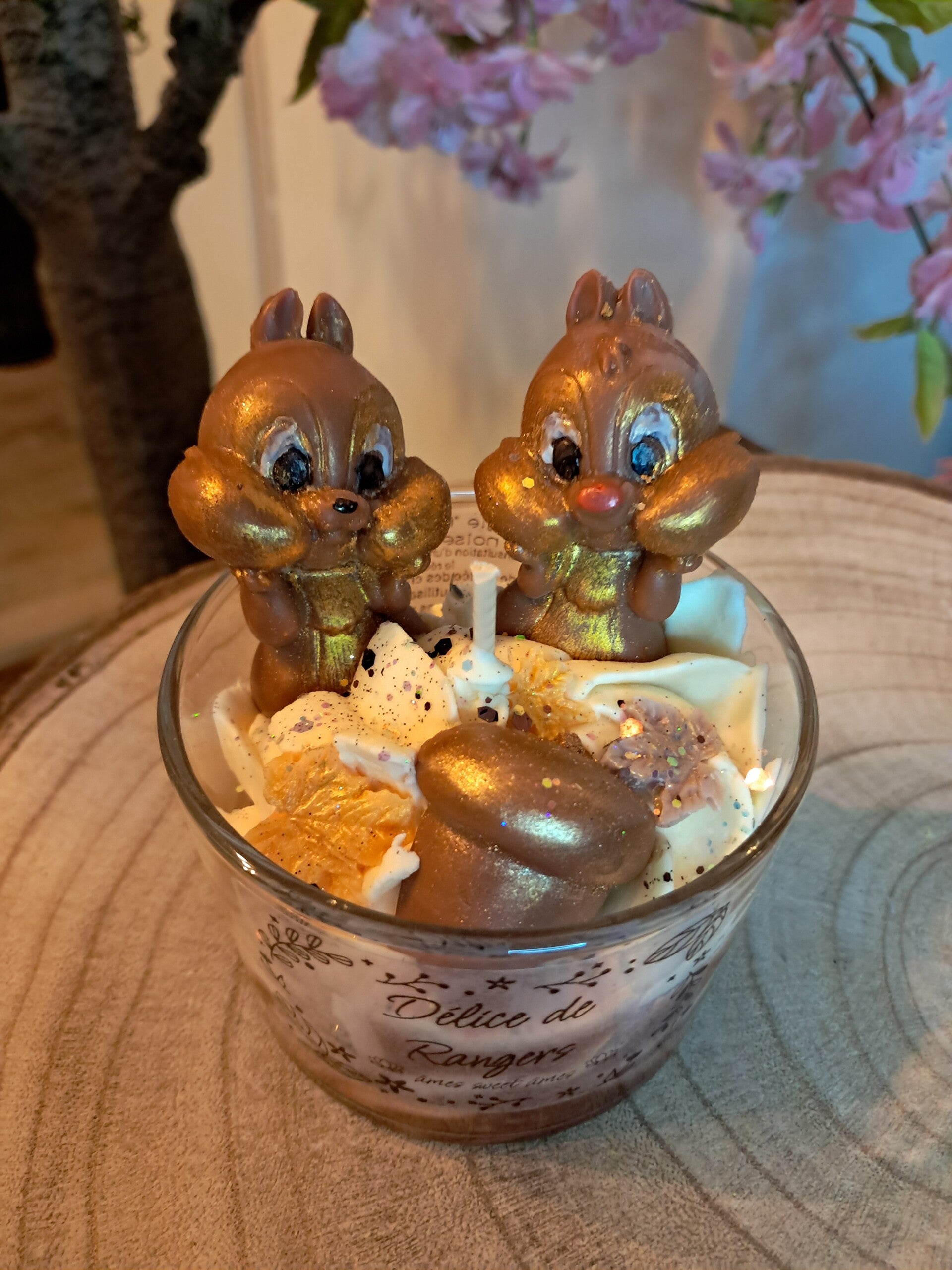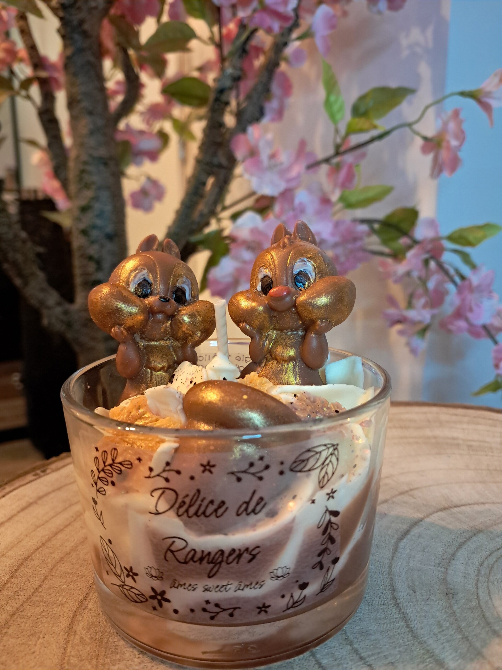 90% de cire de soja naturelle, 10% d'huile parfumée, senteur "Délice de noisettes"