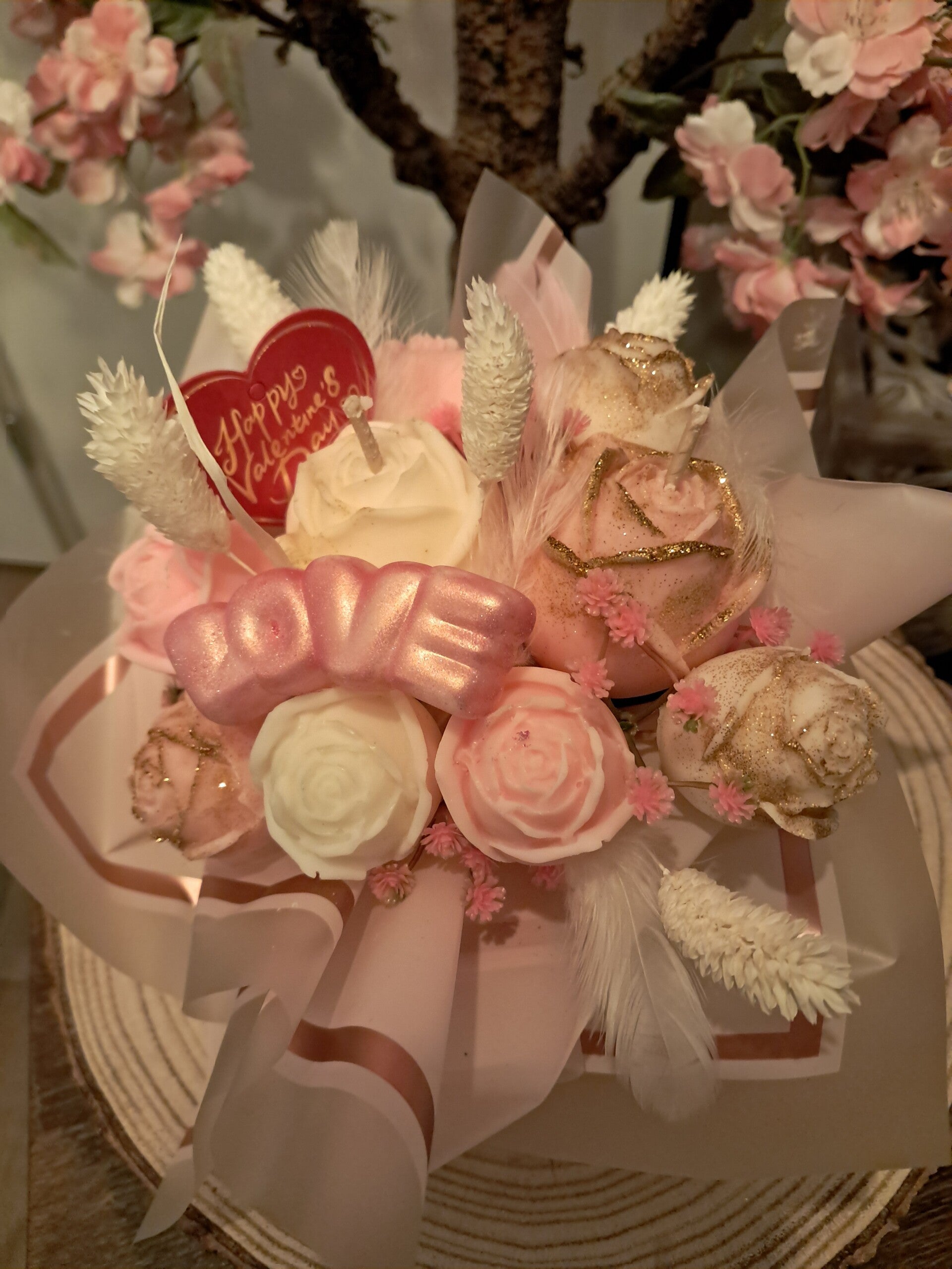 Comprenant des bougies et fondants parfumés en forme de roses.
