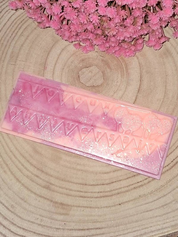 Un fondant parfumé en forme de tablette à casser, pour mettre dans un brûleur avec l'inscription "Joyeux anniversaire "